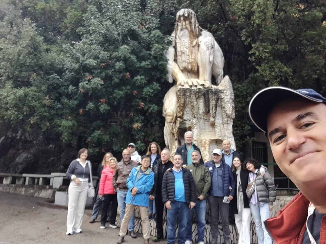 Elie, squatting, with the TCC group during their Beirut city tour.