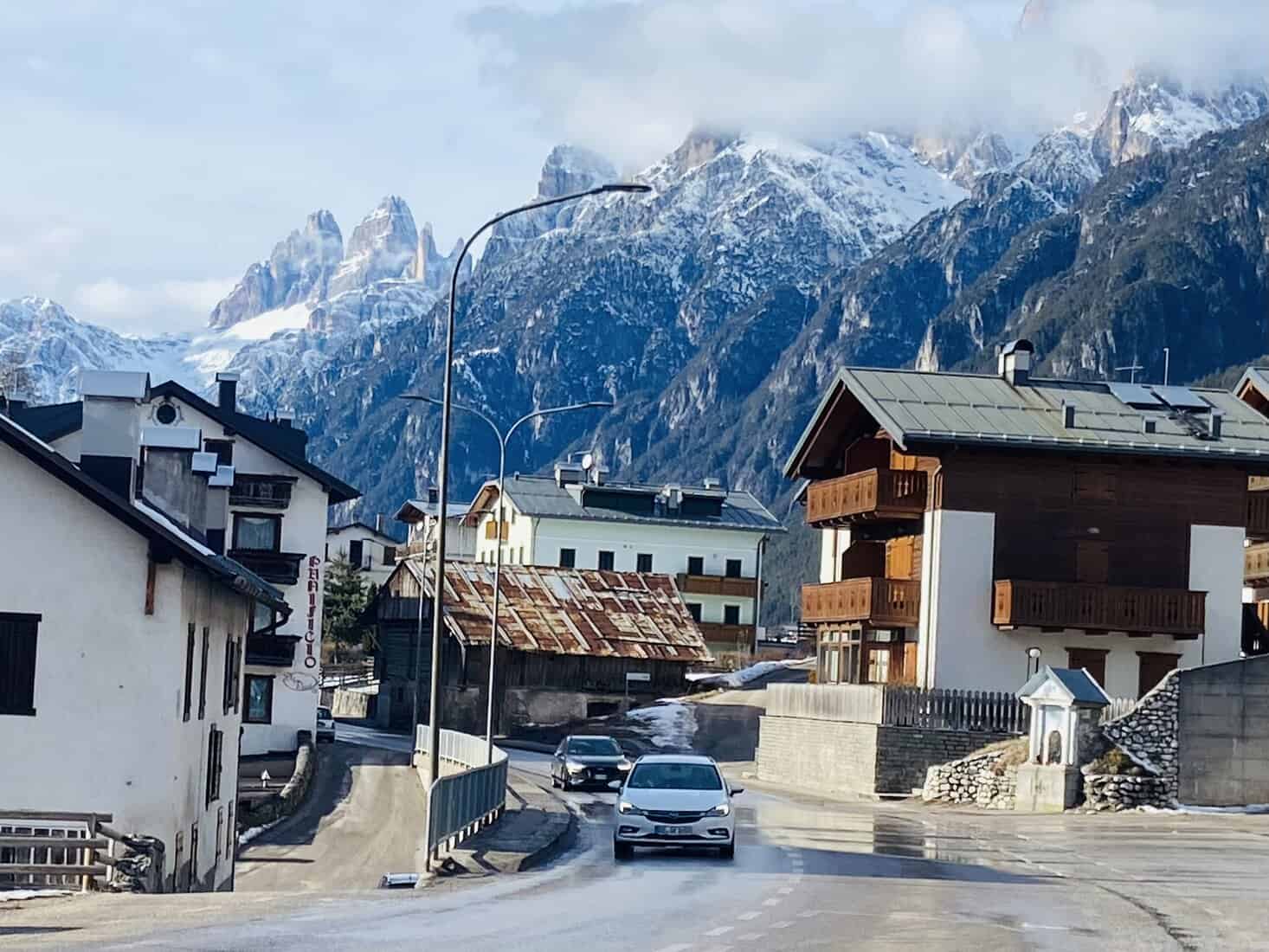 Due to the larcenous €400-plus hotels Cortina d’Ampezzo is charging during the Olympics, I’m staying “down valley” in Auronzo di Cadore. It’s a village of 3,000 people strung out along Lago di Centro Cadore. It’s one of the best places in the Dolomites to view the Tre Cime, the three twin peaks that highlight the zone.