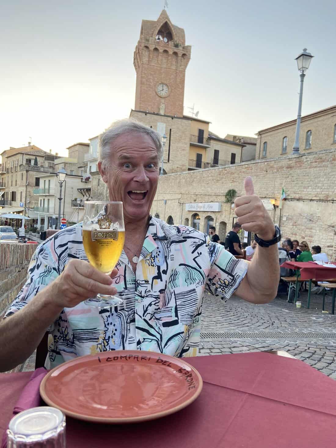 The next day we eschewed our resort’s beautiful, big pool and went down the hill to the beach in Tortoreto Lido. A paved bike path stretches 80 miles from Le Marche to Puglia past beach bars and a long swath of white sand and lanais chairs.
